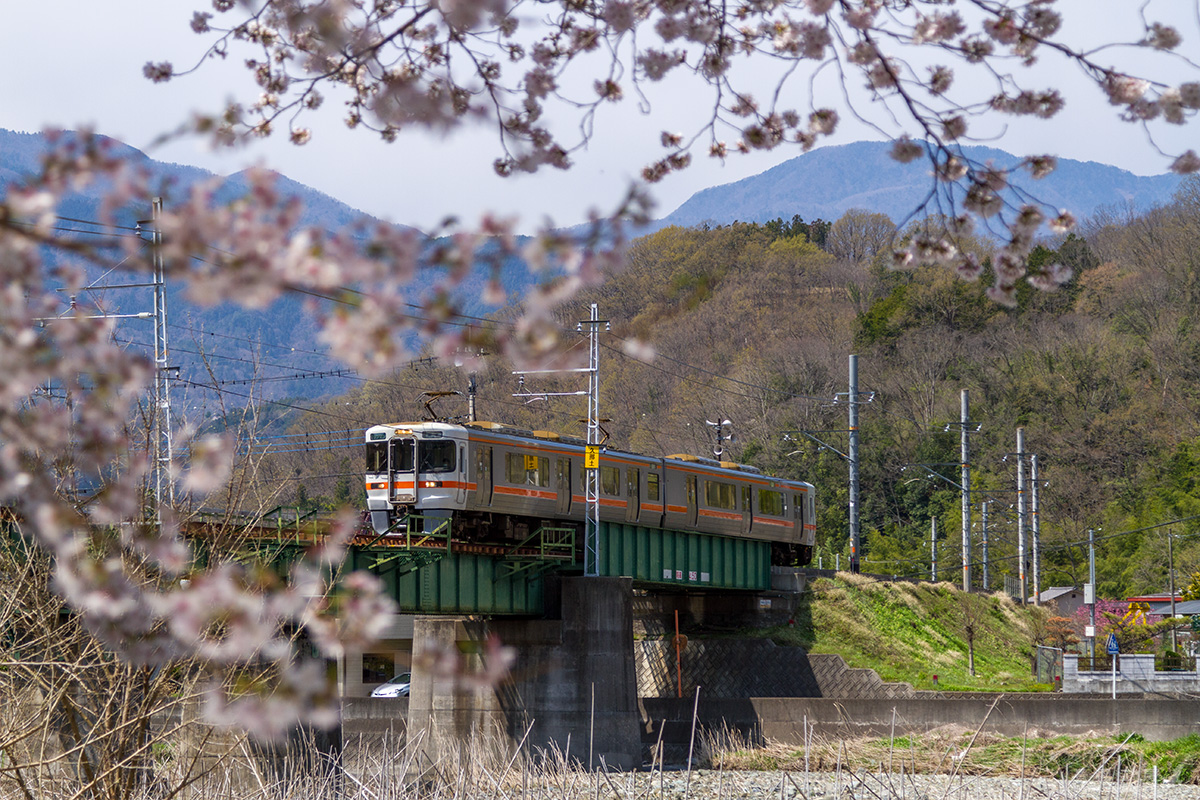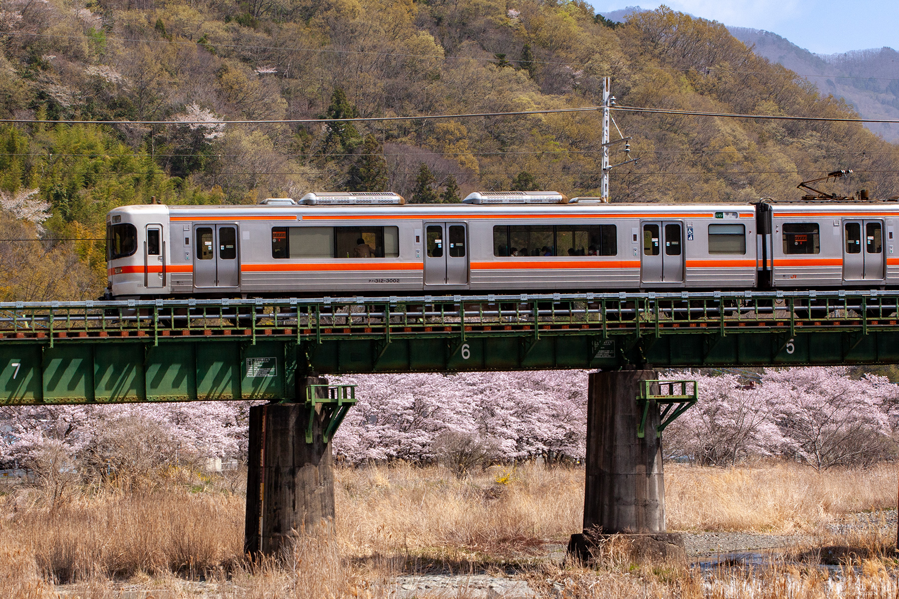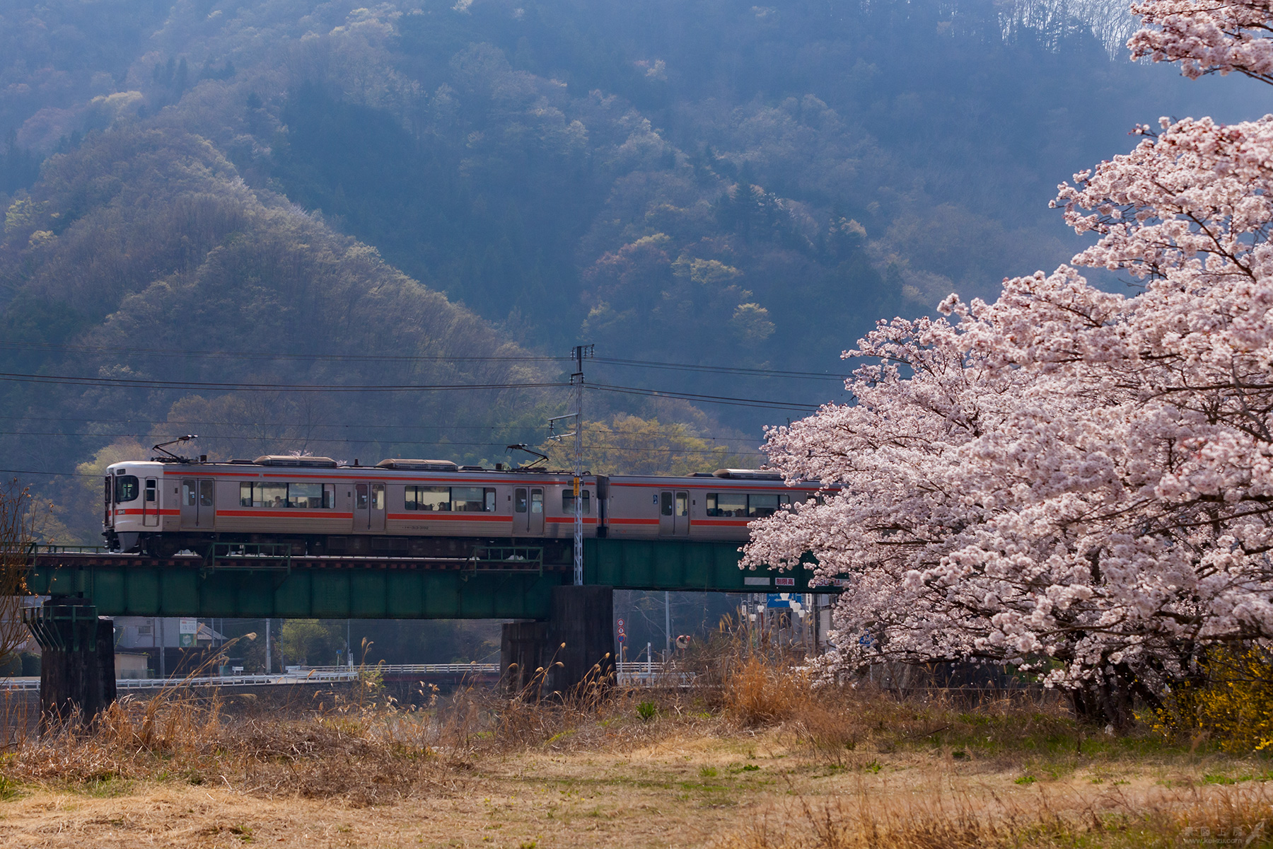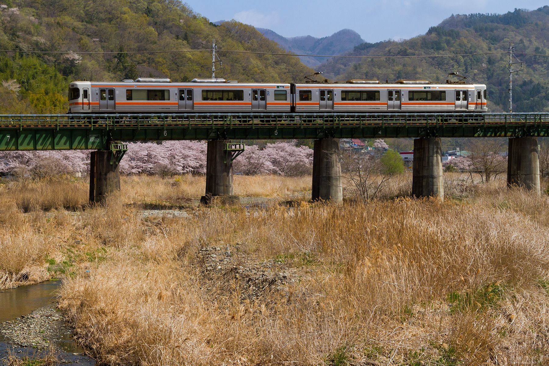 身延線の最初の峠となる下部トンネルを抜けると三沢川沿いに桜並木が見えてくる。 身延線が渡る三沢川橋梁の上流側の両岸に桜並木はあるのだが、左岸側は開花が若干遅い気がしている。