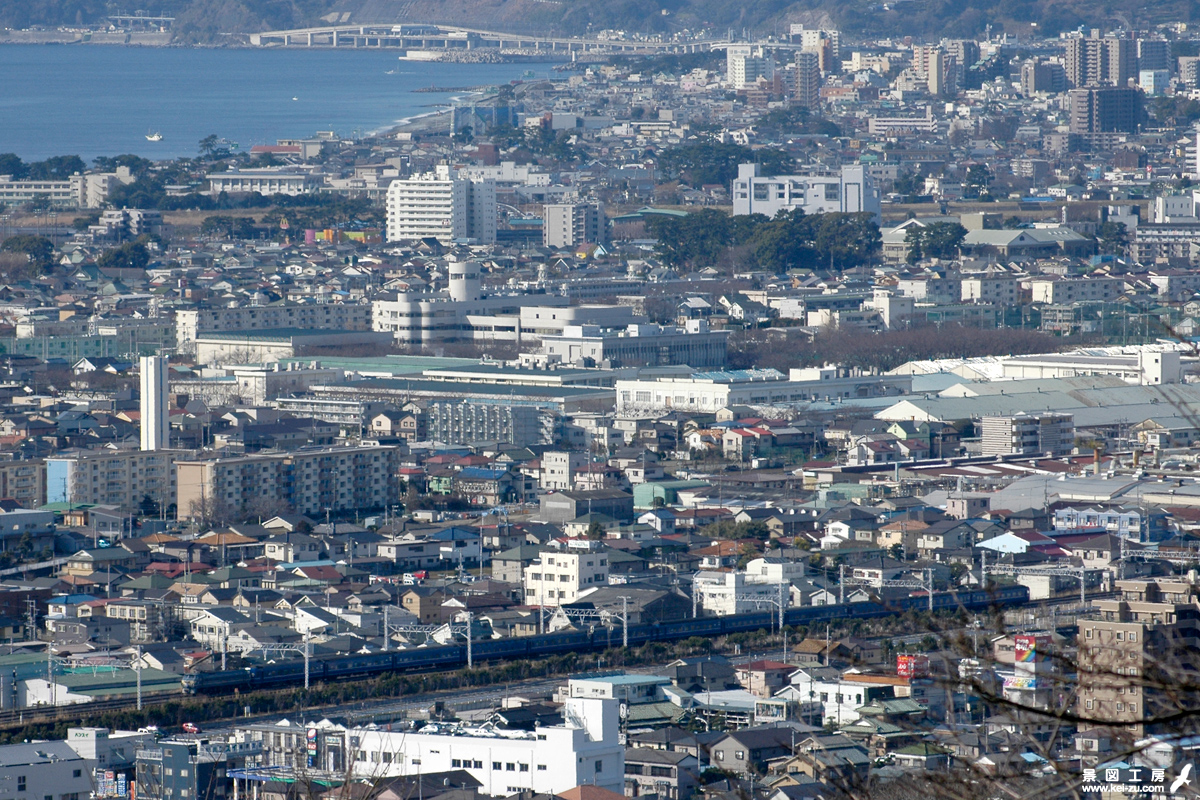 2009.03.12. 国府津-鴨宮間にて 国府津山から俯瞰した相模湾と小田原市街。 左上に石橋の鉄橋が見えます。