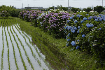 | 開成町の「あじさいの里」の他に、穴場として、この「岡野あじさい農道」があります。こちらは南足柄市になります。この一帯は足柄花紀行と称して、自治体を中心に花をテーマとした、まちおこしが行われています。 | ||||||
