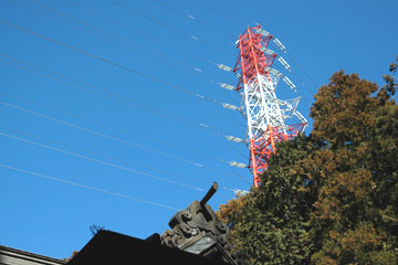 | 社殿裏手の送電鉄塔東富士線No.9 | |||||||