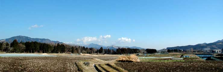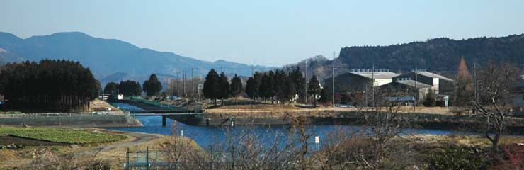 | 阿多野の田園風景 杉林から北(左)側は落差約60mの谷があり須川が流れています。 |