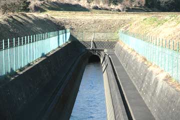| 取水の用水路 約1.5km離れた須川本流ダムから取水されています。 |