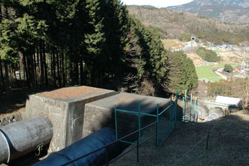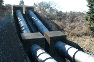 | 送水管 用水路の水門を過ぎると一気に下ります。 |