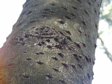 | (03)カラスザンショウの幹肌 知らずに手をつてしまいよく見るとその異様さに驚きました。 | |||||||||