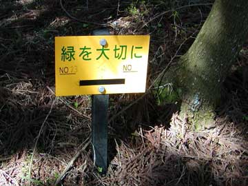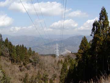 | (04)送電線巡視路のための看板NO.23とNO.22 | (04-05)明神線NO.23からNO.22鉄塔を望む ここからのpanoramaと山座同定はこちら>> |
