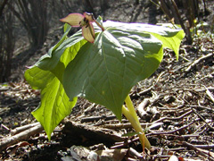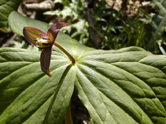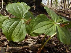 | (10-11)エンレイソウ 「4〜6月にかけて山地に自生する。和名は延齢草」と書かれています。参考文献「日本の野草」/山と渓谷社 |