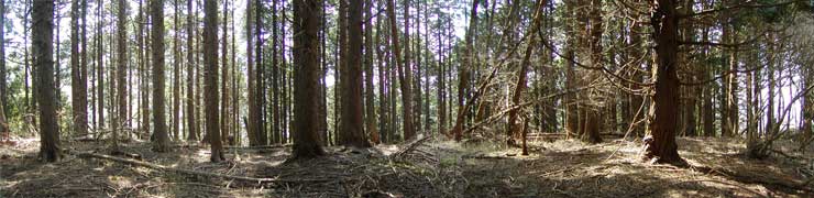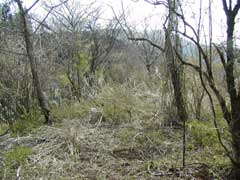 | (13)鳥手山(とでやま)山頂近景 山北町史によれば鳥手山城があったということですが、特に目立った遺構や地形は見当たりませんでした。このあたりも宝永の噴火によって当時の地面は数メートル下に埋もれているものと考えられます。 |