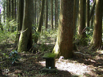 | (18)山頂にある金比羅社 山北町史を先に調べていたので存在は知っていたのですが、森の中から見つけるのに苦労しました。祠の正面が東を向いていることから、平山集落のものかと思われます。 |