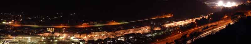 普段は寂しい夜景ですが、この時期には桜色の帯が光ります。