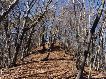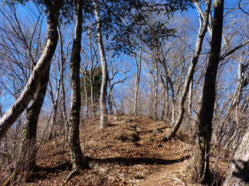 林道分岐から15分、高さ60mを登りきれば目的地、二十六夜山です。 |