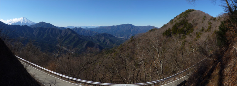 左から富士山、鹿留山、南アルプス、三ツ峠山、二十六夜山。