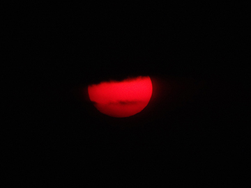 撮影した日の夕刻は天候に恵まれず、日没を捉えることは諦めましたが、数分間だけ夕日の姿を捉えることができました。