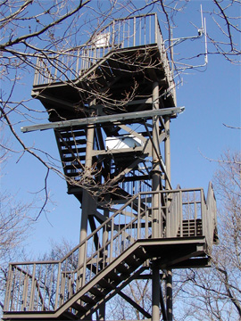 周囲は広葉樹に覆われていて、見通しは利きませんが、高さ13mの展望台が設置されており、360度のパノラマが楽しめます。