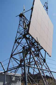 たんなる反射板かと思っていたのですが、出力(増幅?)装置が接続されているようです。反射板が少し下を向いていることから、麓の集落に関連施設があるのかもしれません。