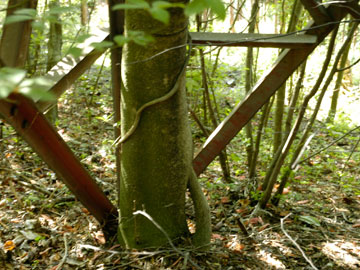 鉄塔の内部に樹木が生えています。しかも太い幹です。やはり、使われなくなってかなりの年月が経っているようです。