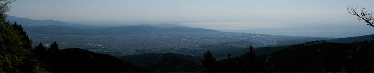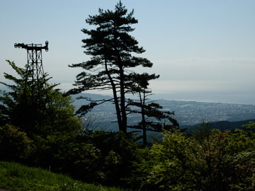鉄塔の周囲を見回るも、これといった情報もなく、諦めて登山道を登り始めました。小田原方面の見晴らしが良くなってきました。