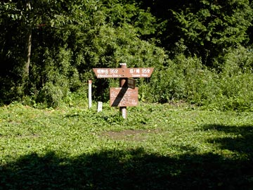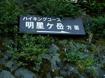 見覚えのある道標が。外輪山尾根へ無事に出ました。 |