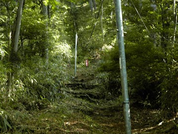 せっかくの森の中の道ですが、俗っぽいポールが連なります。 |