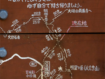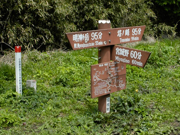 < 明神ヶ岳 95分 塔ノ峰 95分 > |