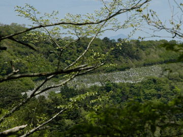 明神ヶ岳山麓は作業用の林道の整備がかなり進んでいるようです。このことと廃道となった登山道に関係がありそうに思えます。この付近の鞍部は四ツ尾(よつお)と呼ばれ、小田原北部へ下る古道があったといいます。天正18年(1590)、徳川家康の軍勢はこの四ツ尾越えを経て久野諏訪の原へ下ったものと考えられています。 |
