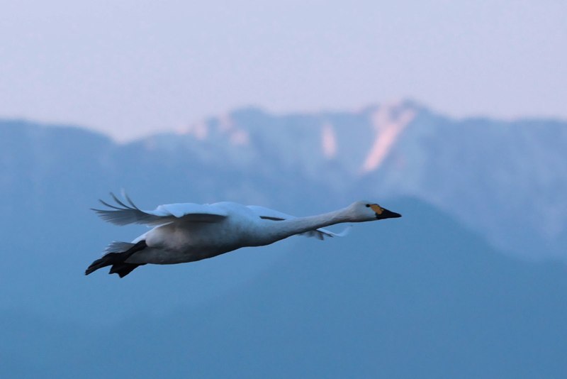 条件が良ければ、日の出前の北アルプスがピンク色に染まるのを目にすることができます。刻々とその色彩は変化してしまうため、二十数枚で構成されたパノラマ写真の技術が試されるシーンでもあります。