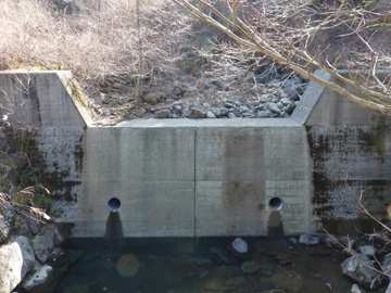 林道脇にあった砂防ダム。銘版にはイバリ沢と記されていました。 |