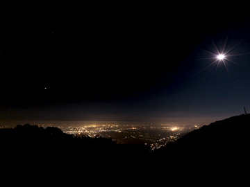 新潟県三条市にある大崎山公園からのパノラマです。 ご覧の通り、広大な越後平野が広がる風景が特徴で、果てしなく平坦な大地が広がっています。例えば、眼下の大崎地区は河口から30km以上内陸にありますが、標高は12mほどしかなく、このことからも河川の氾濫と堆積の作用で形成された地形であることが伺えます。 平野の西端には山全体が神域である弥彦山があり、一帯のランドマーク的存在となっています。 夕景 夜景 北側の漆黒の田園地帯を貫く道路は直線の光の筋として夜景を構成しています。空気が澄んだ日には新潟駅を中心とした繁華街の街灯りも見えるはずです。 参考文献