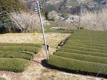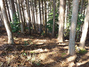 空堀の窪地が作業道として使われている。 |