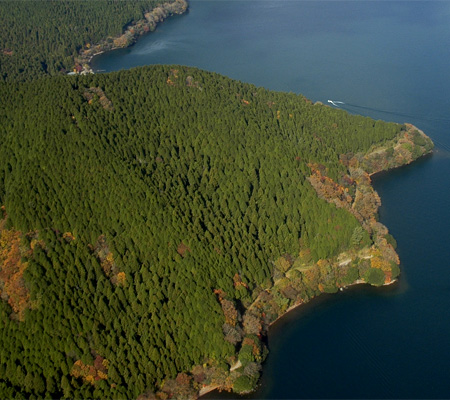 手前の道路は湖尻峠と湖尻を結ぶ「県道337号-仙石原新田線」