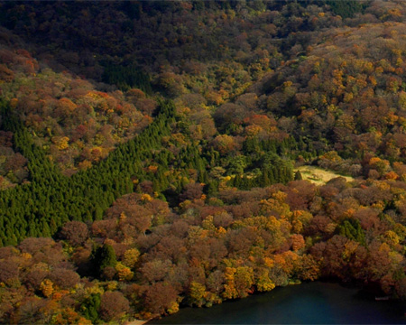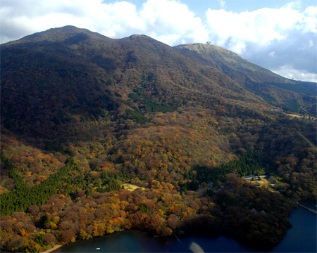 ヘリはこのあたりから旋回し、再度、外輪山の外へ出ます。