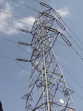 | 立体写真:交差視でご覧下さい。 | 明神線は南足柄市塚原の西相模変電所と駿東郡小山町の東富士変電所を結んでいます。 | 昭和42年6月建設/鉄塔の高さ30mという意味らしい。 | |||||||||||