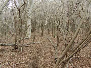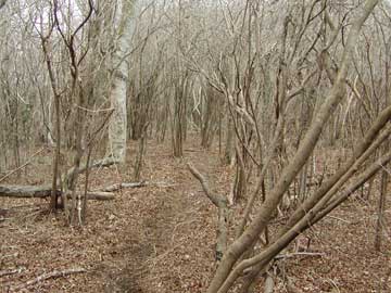 | このような広葉樹林帯が続きます。落葉から判断するとカエデ系でしょうか。誰にも会うことのない山道でした。 | ||||||