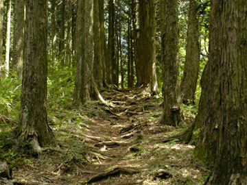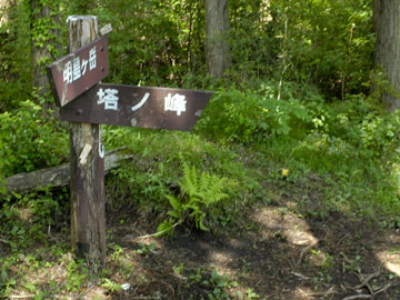 林道から再び登山道へ分岐し、しばらく登り坂となります。こういった小さなピークでも、体力的にそろそろしんどくなってきます。 |