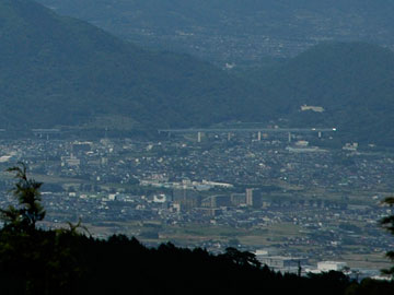 所々で展望のある場所があります。写真中央の建物は開成駅前のマンション群。遠くに写っている街は秦野市街。 |