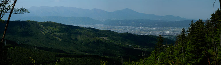 塔ノ峰山頂の手前で、杉・桧林が近年伐採された場所がありました。そのため良い眺望が得られています。(写真をクリックで拡大) |
