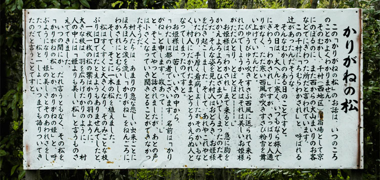 途中、小さな神社があります。境内には京より鎌倉に向かう姫の悲しい伝説「かりがねの松」の説明板があります。