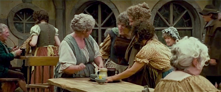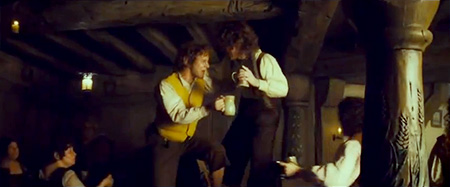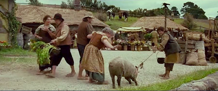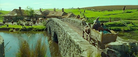 第1部 -The Fellowship of the Ring (旅の仲間)-の冒頭で描かれるシャイアの情景。居酒屋グリーン・ドラゴン前の広場