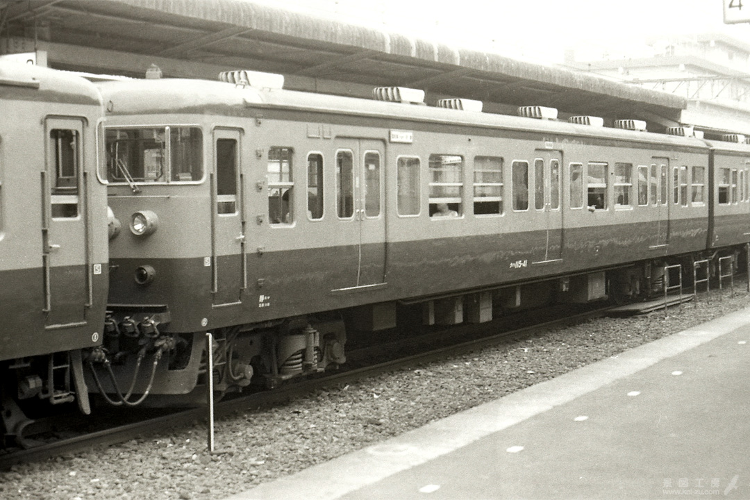 1993年11月28日付けで、つまりこの撮影の後まもなくクモハ115-515へと改造される。1990〜91年にかけてC-AU711クーラーで冷房改造された車輛はクハからの直流給電方式のため5000が付番され、クモハ115-5515となり最後まで御殿場線で活躍した。