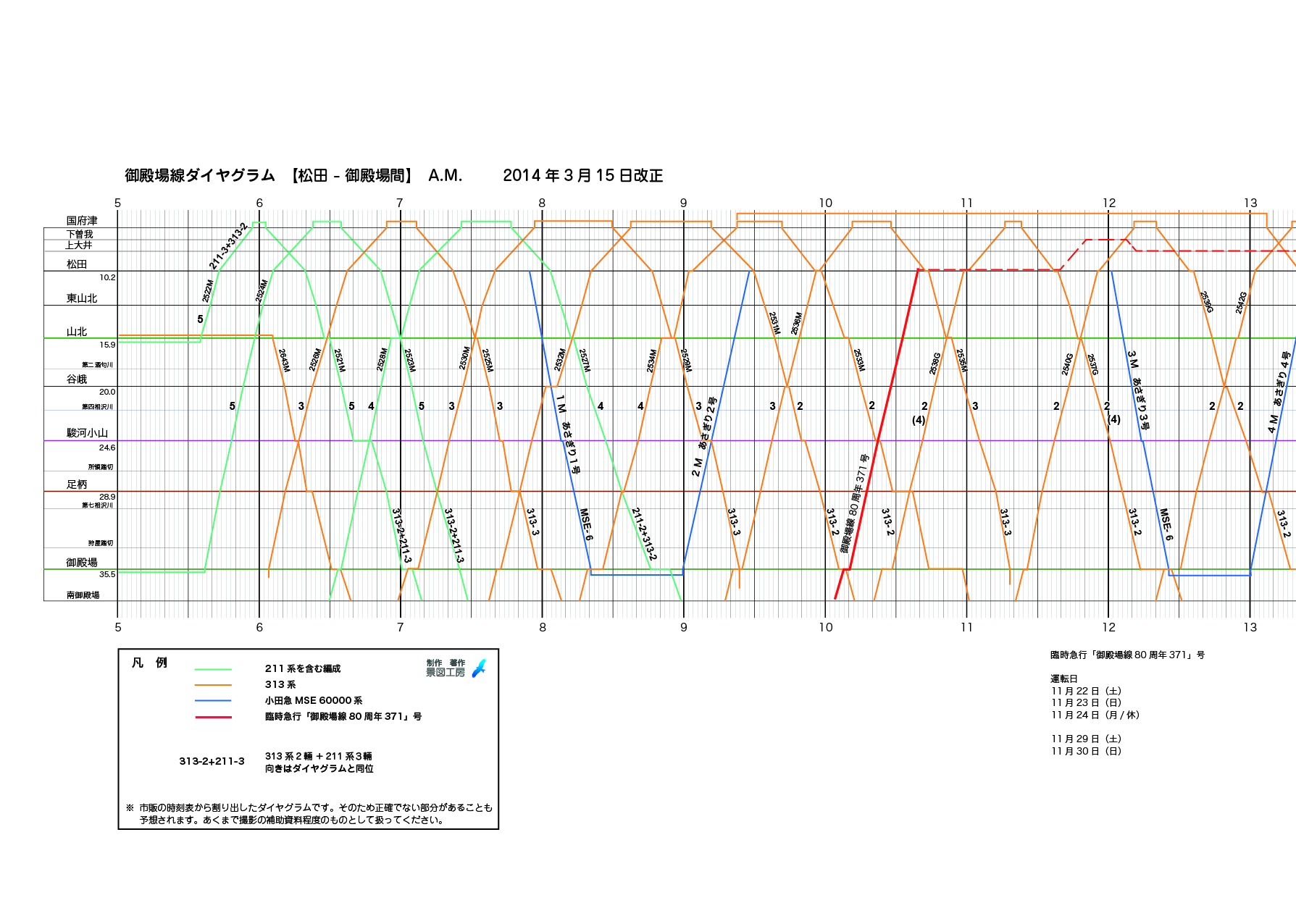 NEW! 11月24日 回送スジ更新 下曽我ー松田間確定 12:00PM〜のダイヤはこちら