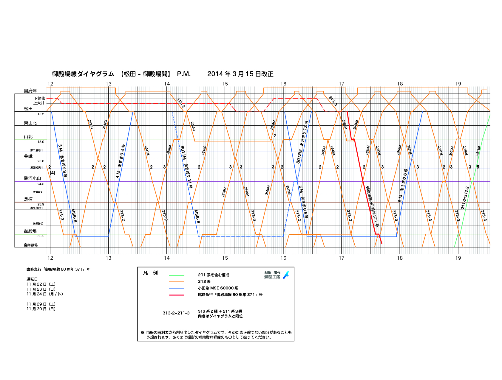 NEW! 11月24日 回送スジ更新 下曽我ー松田間確定 始発〜13:00のダイヤはこちら