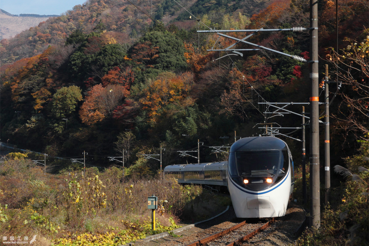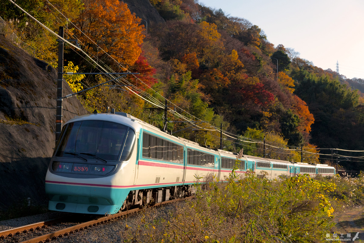 この区間の背後の紅葉は特に美しい。デハ20302ほか
