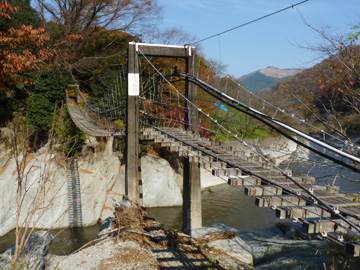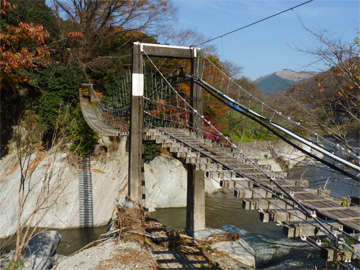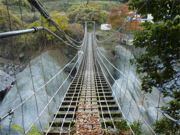 先述の柏木集落へ通じていた吊り橋跡も、かつては同様の風景をなしていたのであろう。今なお現役の吊り橋を目の当たりにしたことで、遺構にリアリティーが増してきた感がある。