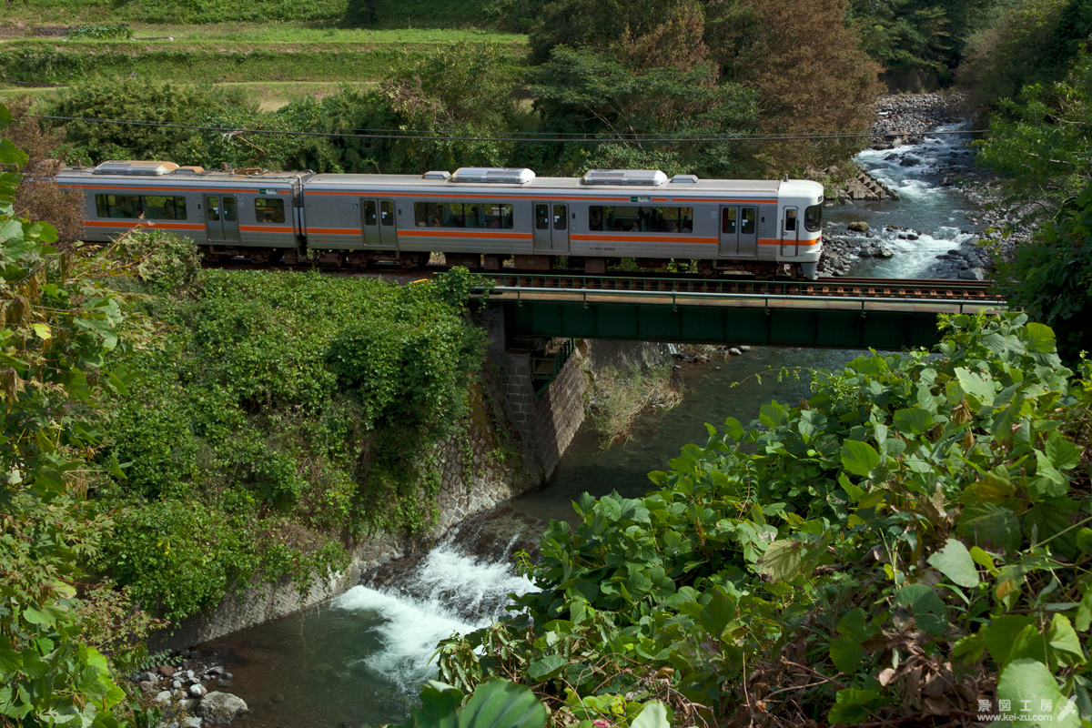 酒匂川水系を幾度となく渡ってきた御殿場線も、第7相沢川橋梁が最後となる。ここまで登ってくると川幅も大分狭くなり、径間22.25mのプレートガーダー1連で施工されている。