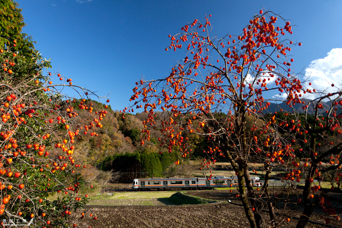 出来すぎた風景のようだが、現地には秋に、たわわに実る柿の木がある。撮影の人気スポットのようで、撮影者を何人か見かけた。