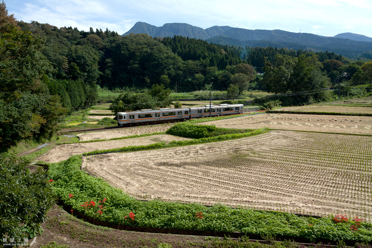 この付近は秋になると彼岸花に彩られ、私の気に入っていた撮影ポイントであった。しかし2011年に線路脇にフェンスが施工され、風景が破綻してしまった。