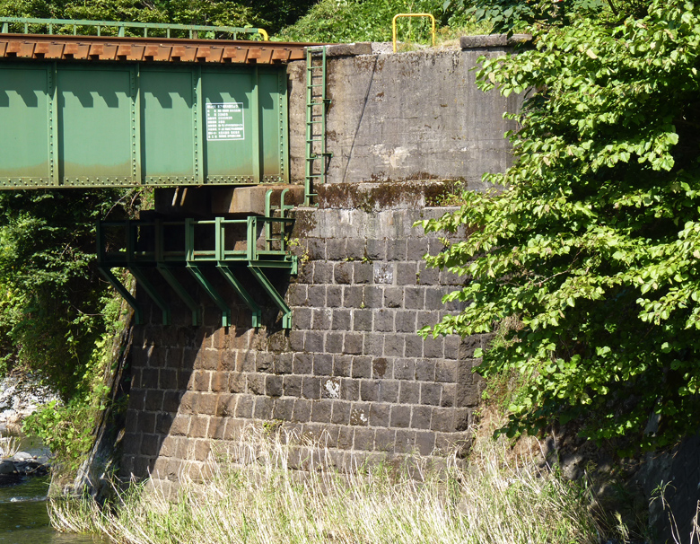 複線化に伴い幅の広い平積みの橋台が施工され、当時のまま現在に至っている。