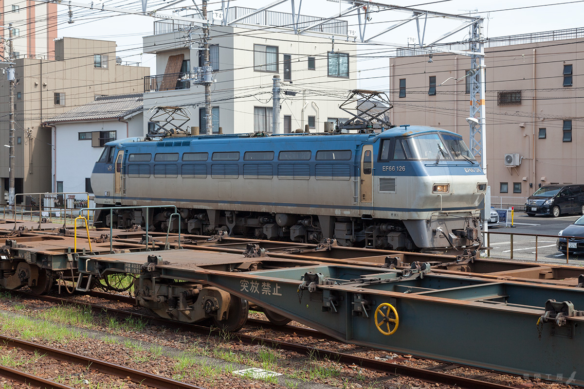 富士駅は2018年現在も貨物取扱駅となっており、この日はEF66 100番台が停車していた。