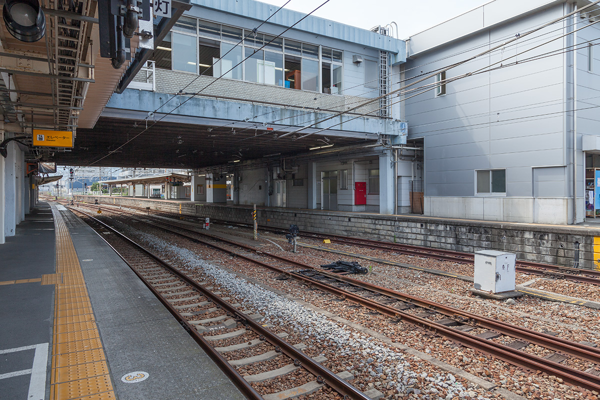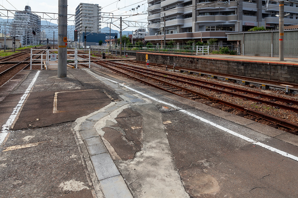 跨線テルハ以前の構造物なのだろうか、ホームの先端はスロープとなっていた。