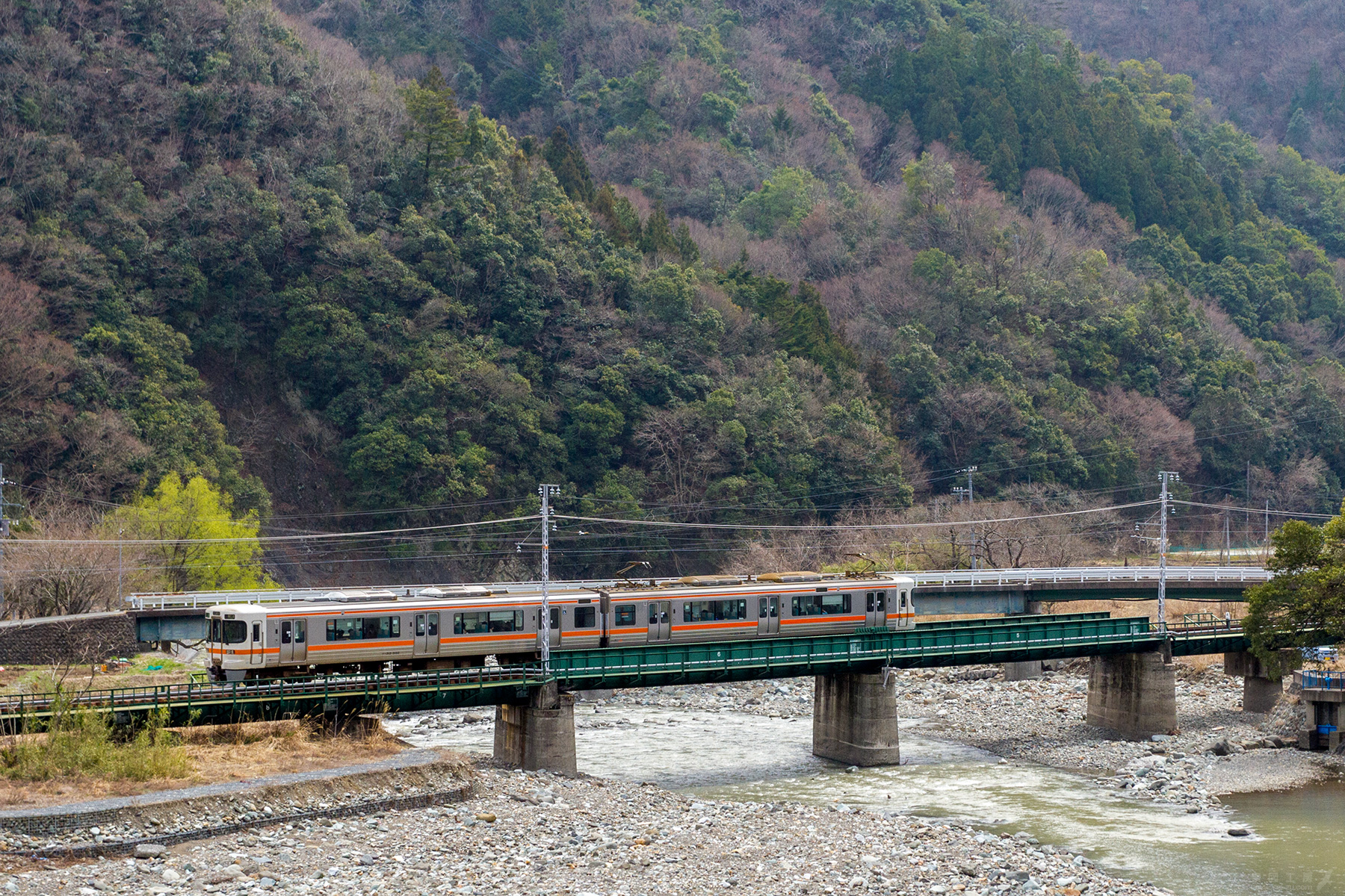 第2湯川橋梁を渡る115系2000番台 身延線色