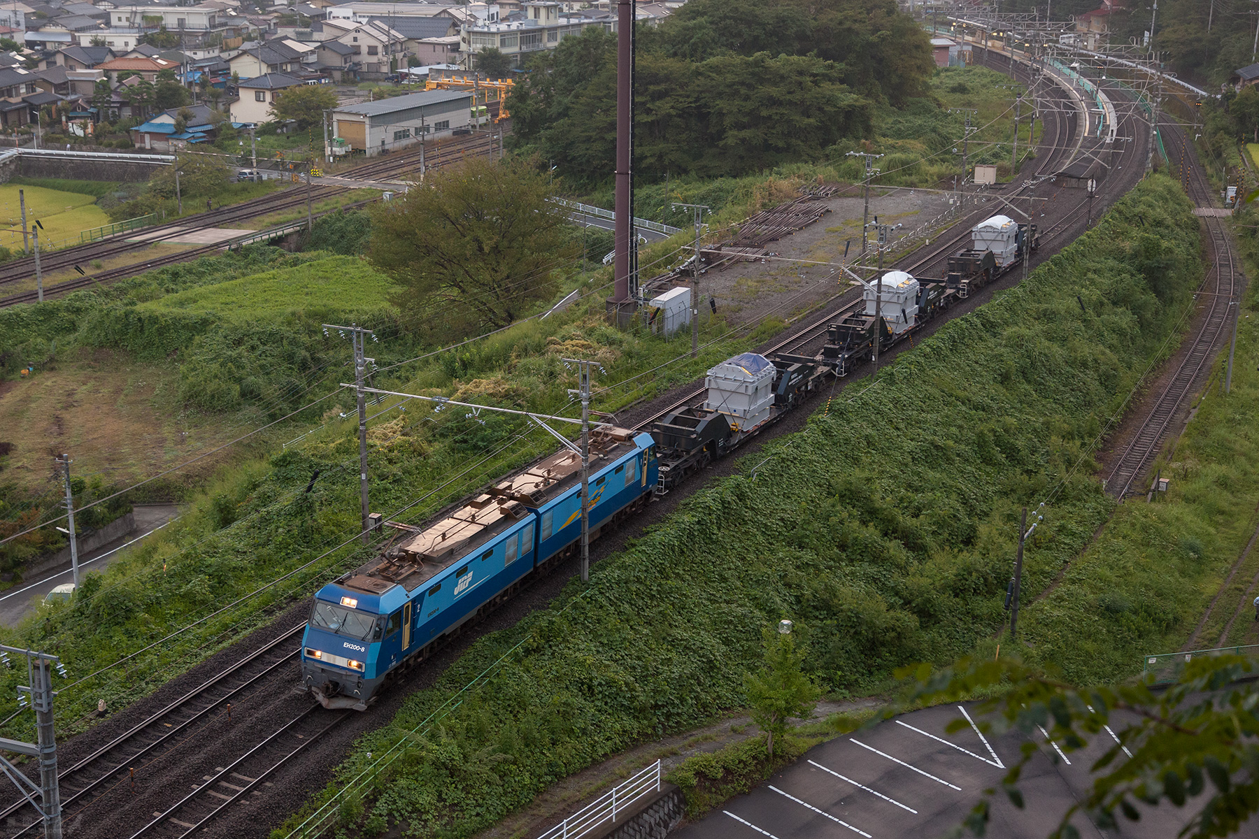 荷下ろし位置の引込み線へ、特大貨物がED10による後押しで入線した。